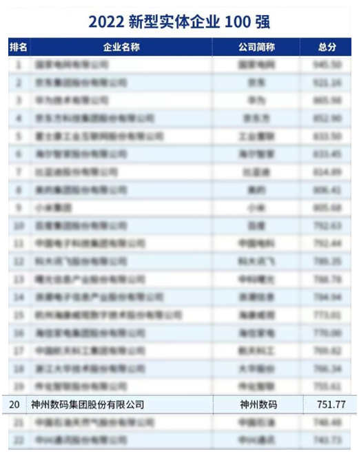 11月27日,中国企业评价协会在中国企业家博鳌论坛“中国式现代化下的新型实体企业发展之路”研讨会上重磅发布了“2022新型实体企业100强”榜单,1号娱乐数码(000034.SZ)凭借强劲数字化服务能力和赋能数字经济发展的丰富实践成功入选,位列榜单第20位、现代信息技术服务企业前列。